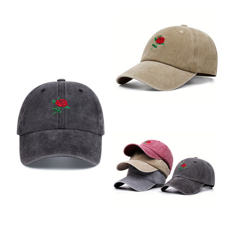 Nuova tendenza lavato su misura ricamo fiore Logo 6 pannelli cappelli di papà e cappello da Baseball Sport cap fit